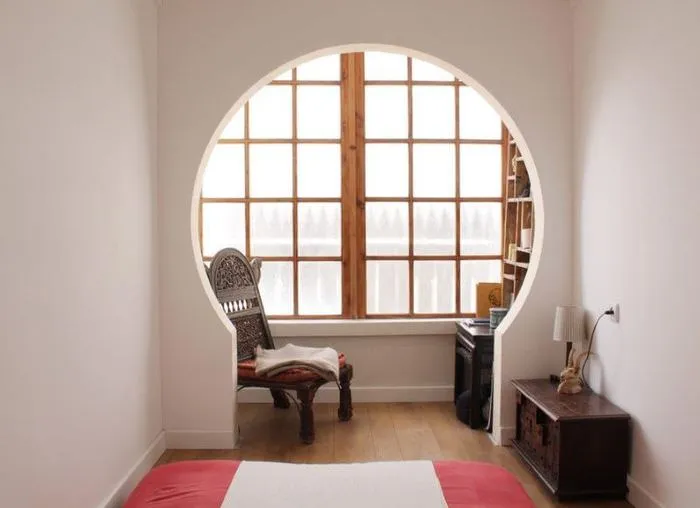 Вариант 4. Вы можете поместить деревянную раму и витражную арку в проем, достаточно широкий для размещения гостей. Это кажется простым и разумным. Она пропускает свет и визуально расширяет пространство. В этом примере арка повторяет форму окна, но в основном подчеркнута.