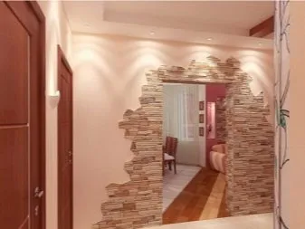 Практичным и распространенным способом декорирования перегородок вокруг бездверных входов является использование искусственного камня. Этот материал обладает множеством положительных свойств.
